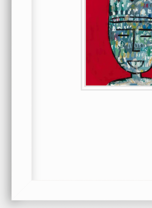 The white frame is 10.9" x 12.4" and is the Framebridge Irvine Slim Clean white gallery frame.