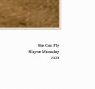 This is a print of a photograph taken by Blayne Macauley in 2023 titled "She Can Fly."