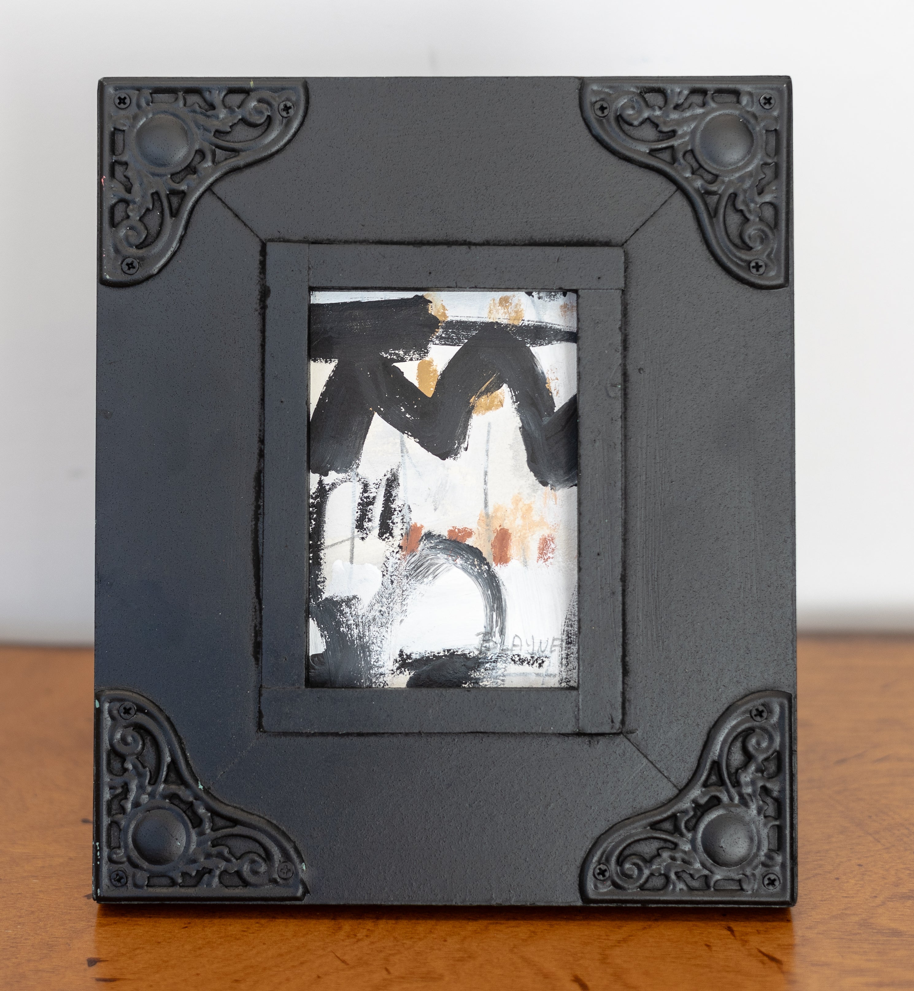 This is an original work on paper framed in a painted vintage frame. This is a kick stand frame. This price includes free shipping.