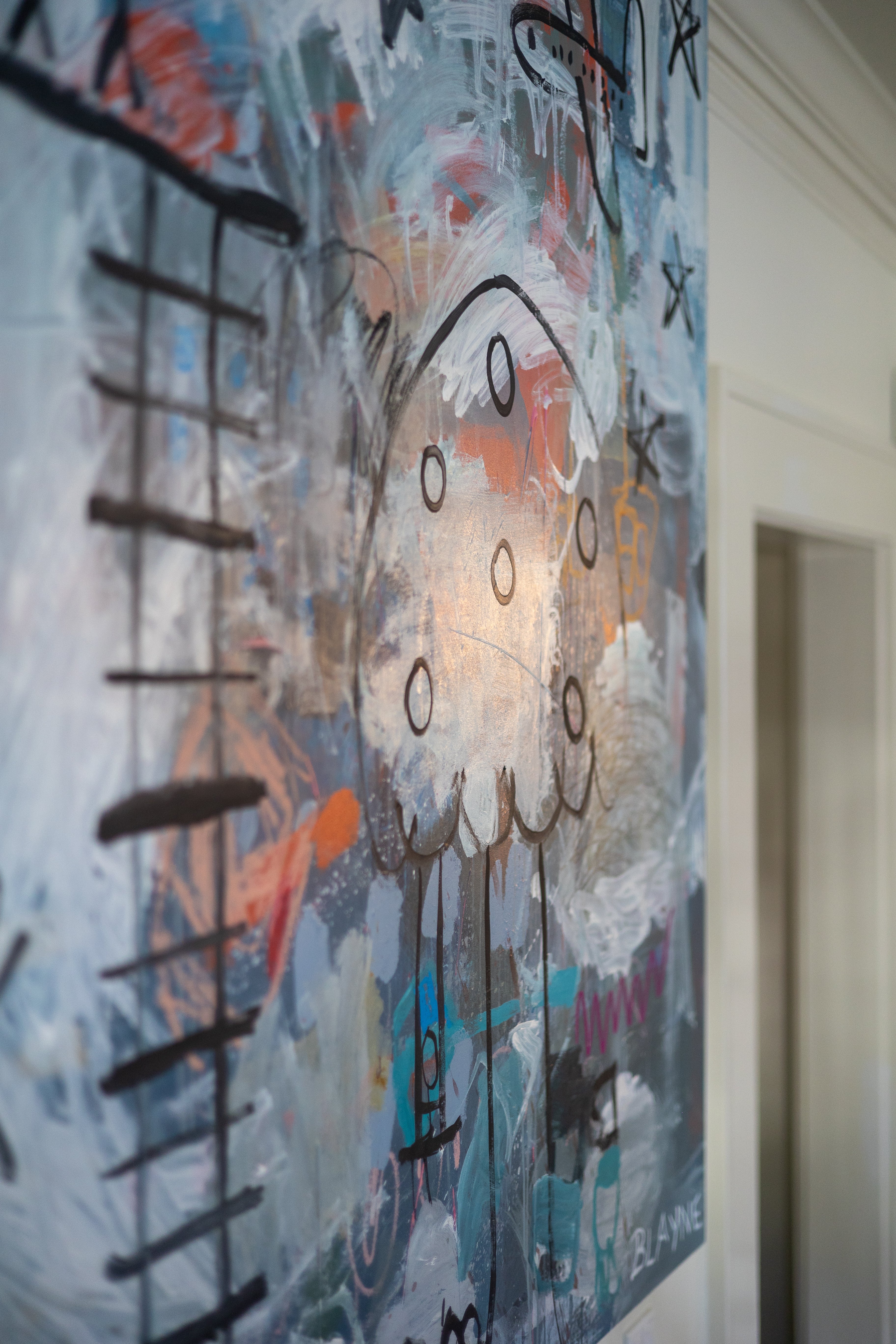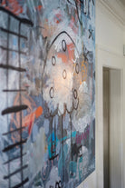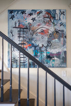 This magnificent 40"x40" custom painting is a symphony of colors and memories that invites you to step into the enchanting world of childhood nostalgia. The canvas dances with a palette of blues, oranges, whites, and blacks, creating a vivid tapestry that tells the story of a day at the circus through the eyes of a child.