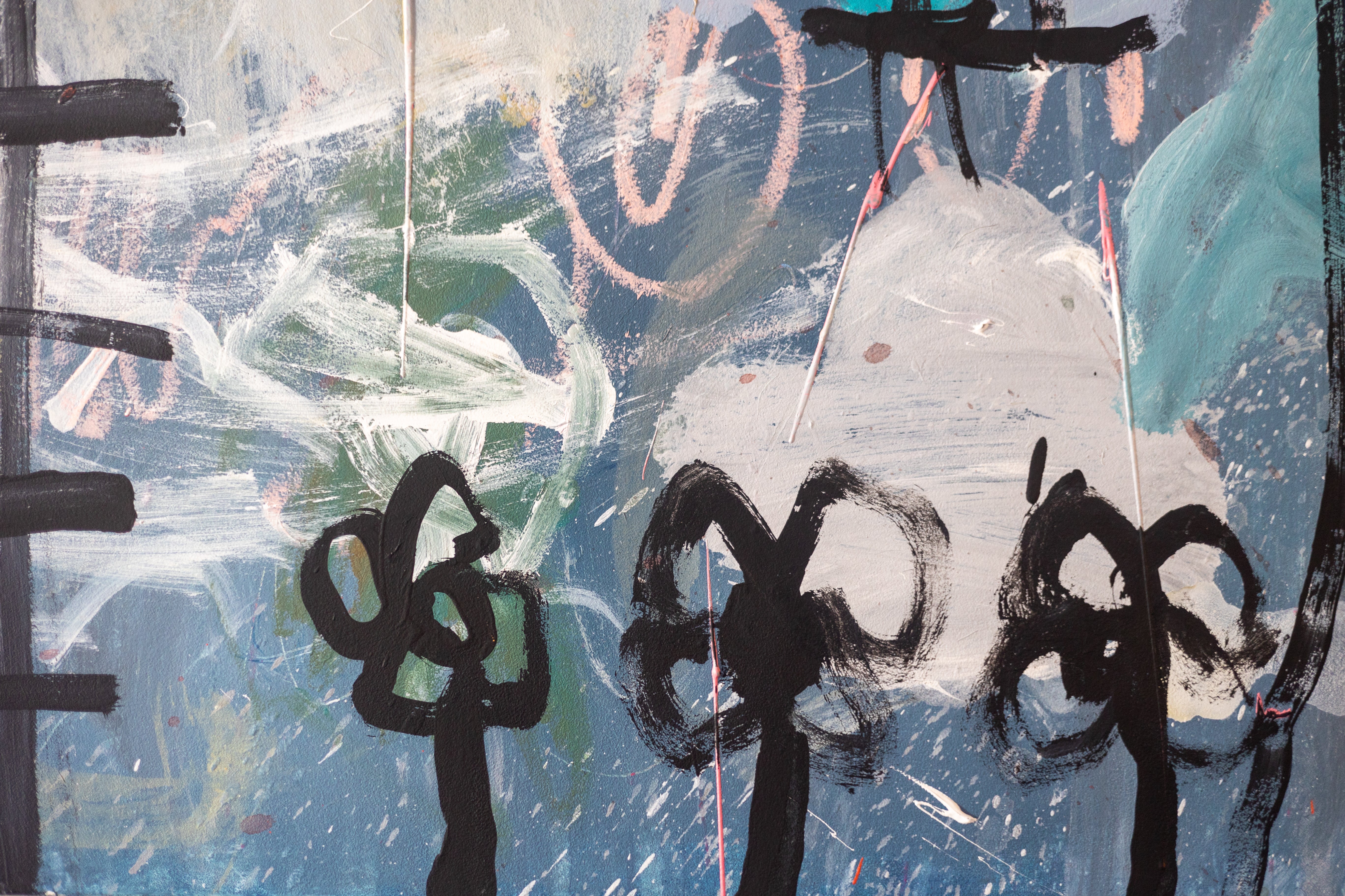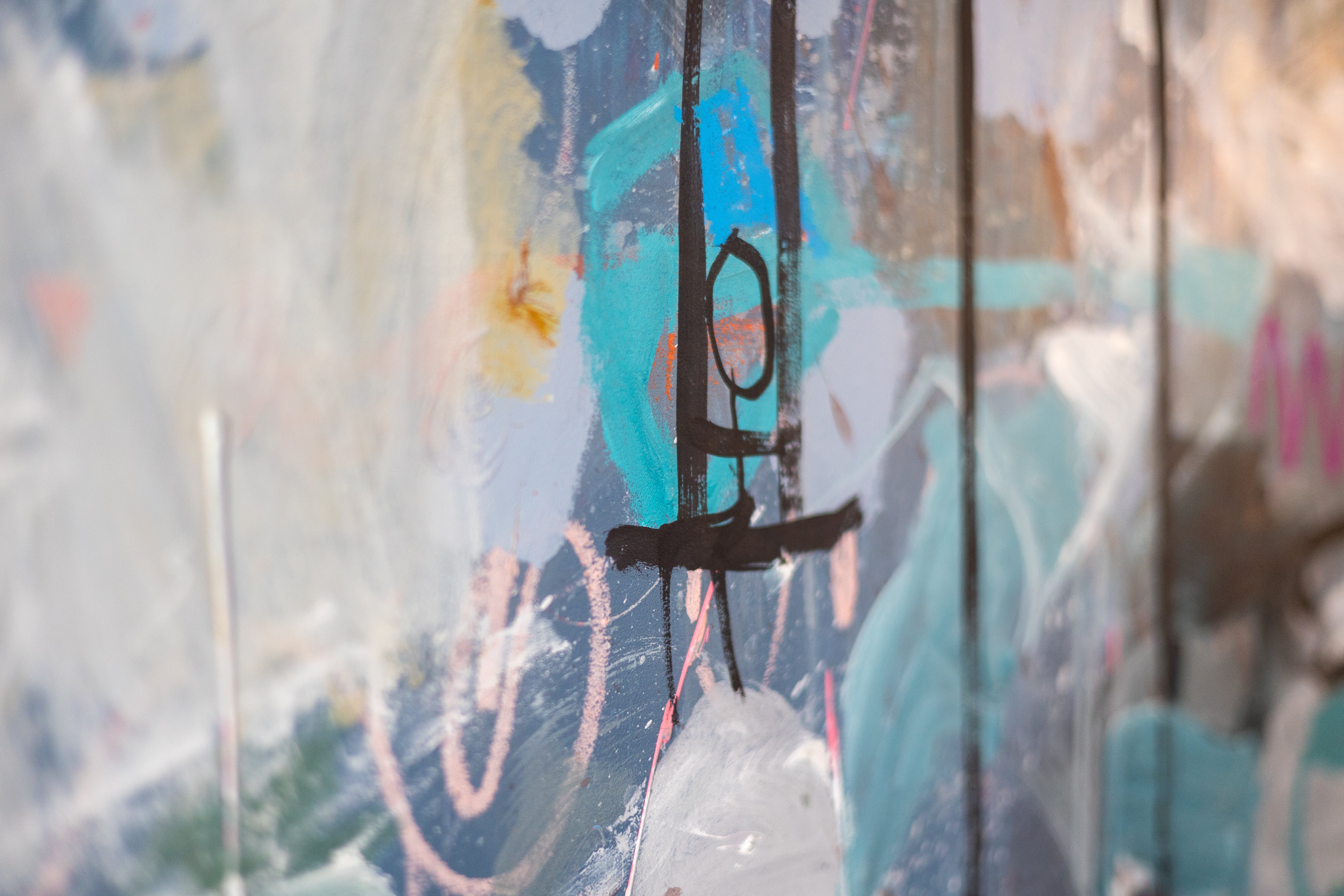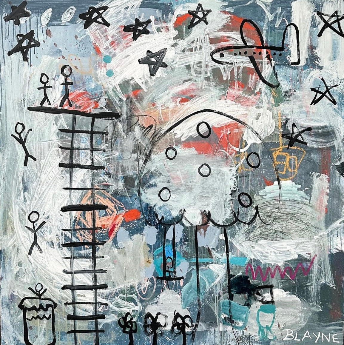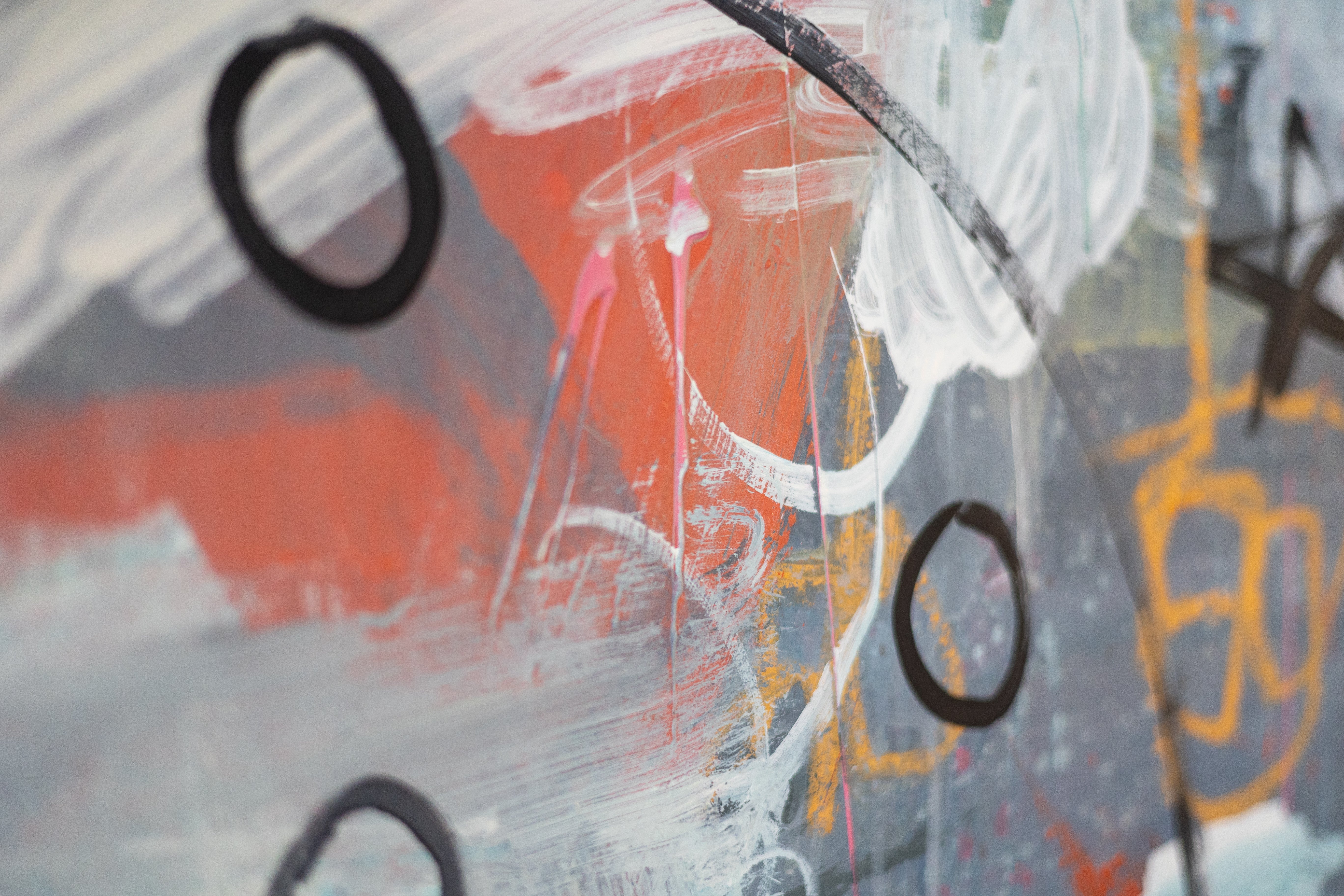 40"x40" original painting - acrylic paint and oil pastels - on a custom wood panel.