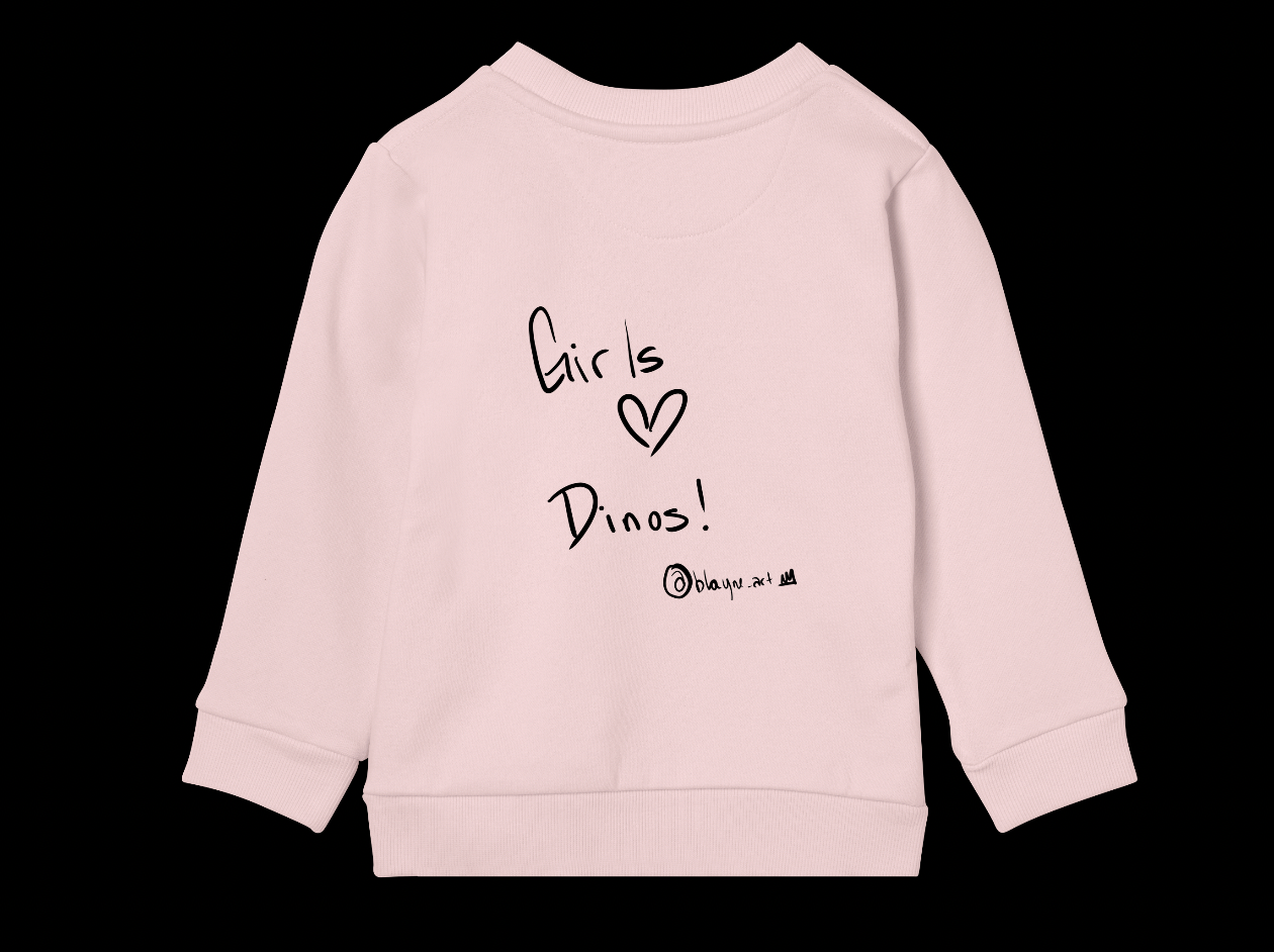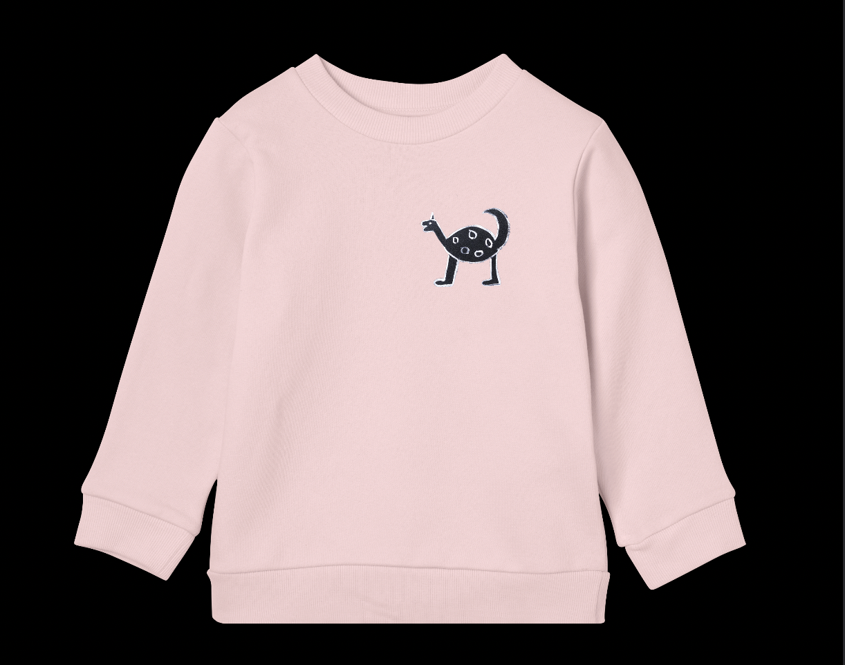 A Kids Sweatshirt with a timeless fit, in medium weight brushed fleece made from 80% organic cotton and 20% recycled polyester. It features a chain-stitched, felled shoulder seam with inside neck tape, and double shell 'half moon detail on the inside neck. The garment is finished with ribbing at the neck, hem and and cuffs. Pink. Comes in 3 Sizes.