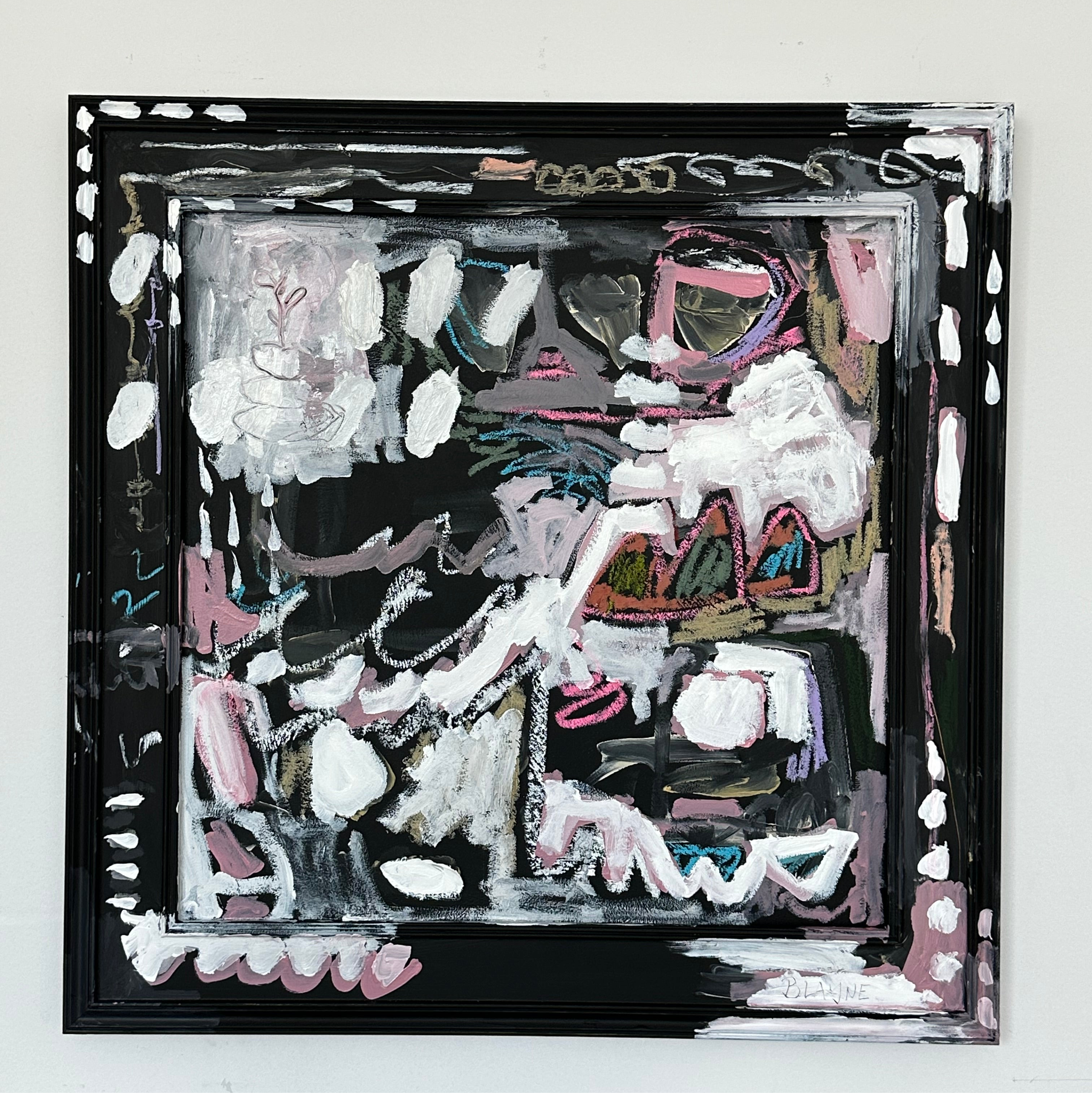 19.5x19.5” wooden board framed in a wooden frame wired and ready to hang.