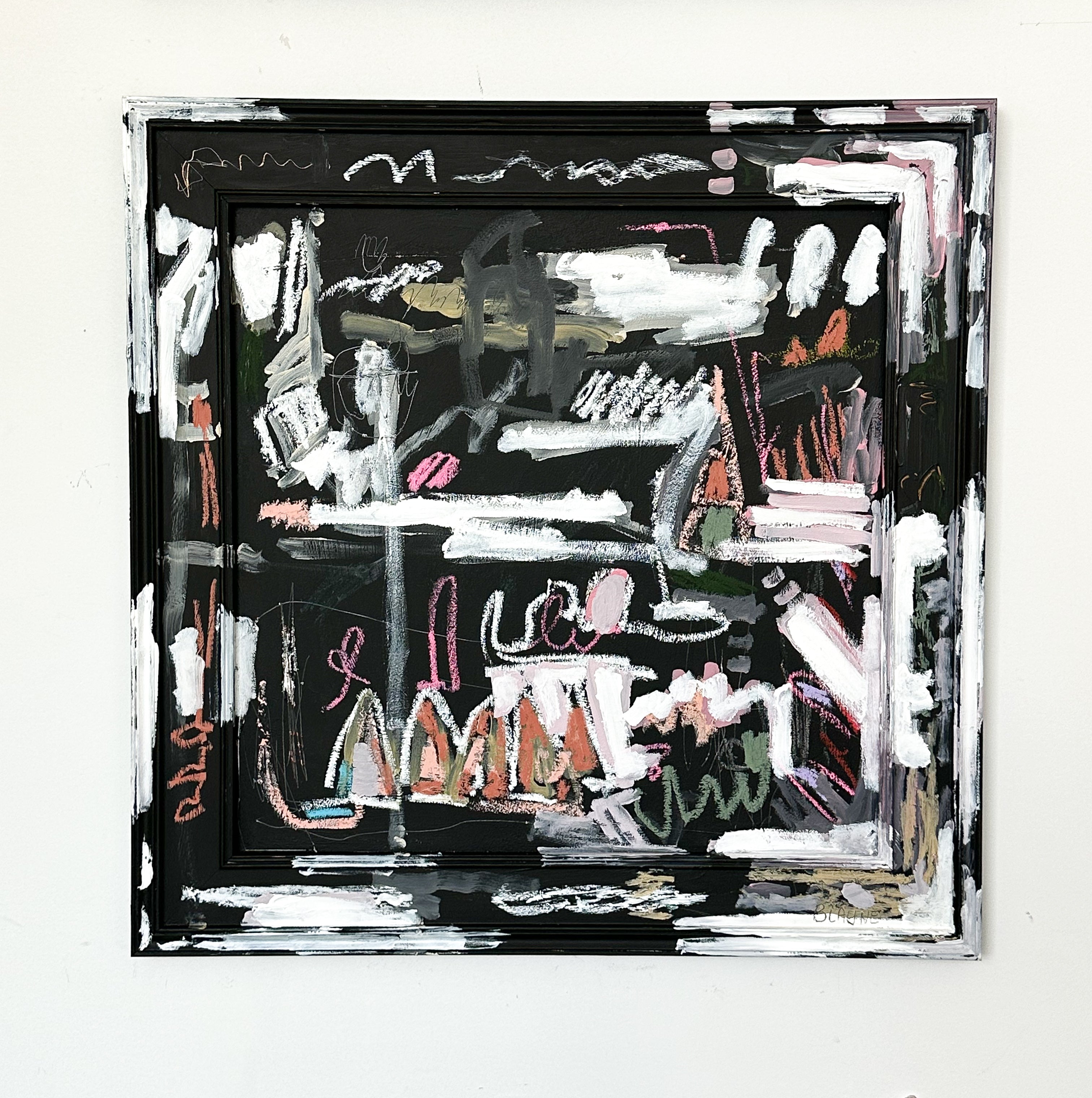 19.5x19.5” wooden board framed in a wooden frame wired and ready to hang.