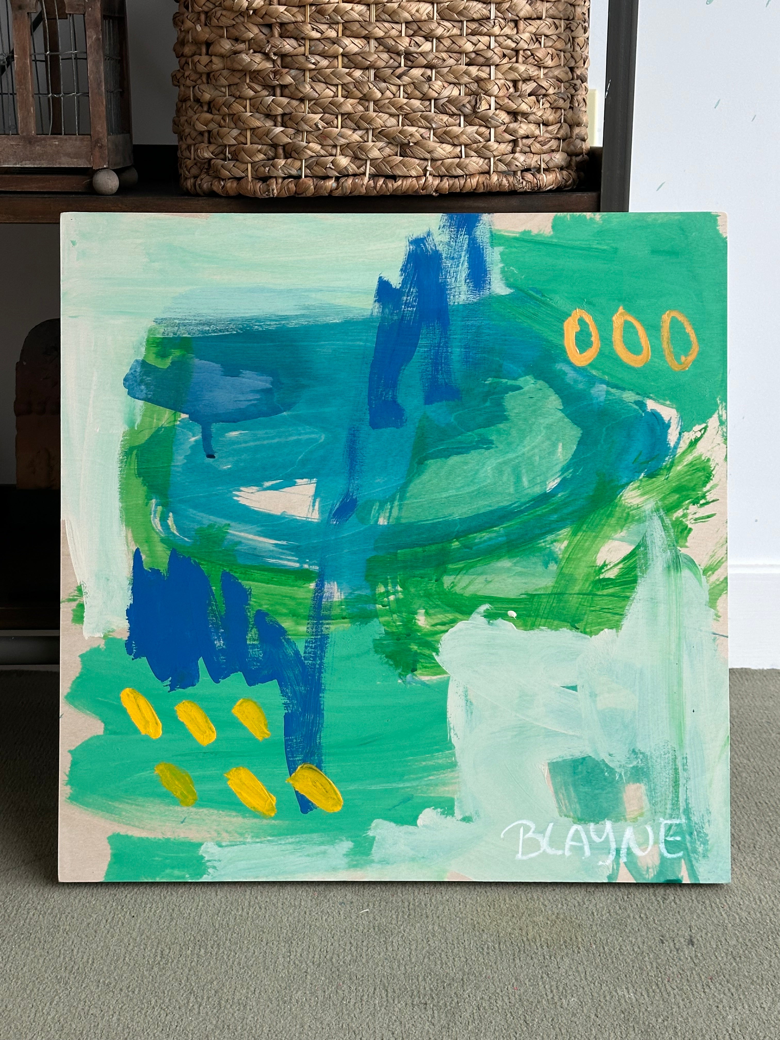 24x24” work on wood panel. Acrylic and oil pastel! Wired and ready to hang. Free shipping within the US.