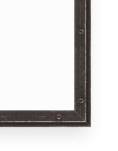 The black steel frame is 22.88" × 26.88" and the Framebridge Bolton Riveted steel frame.
