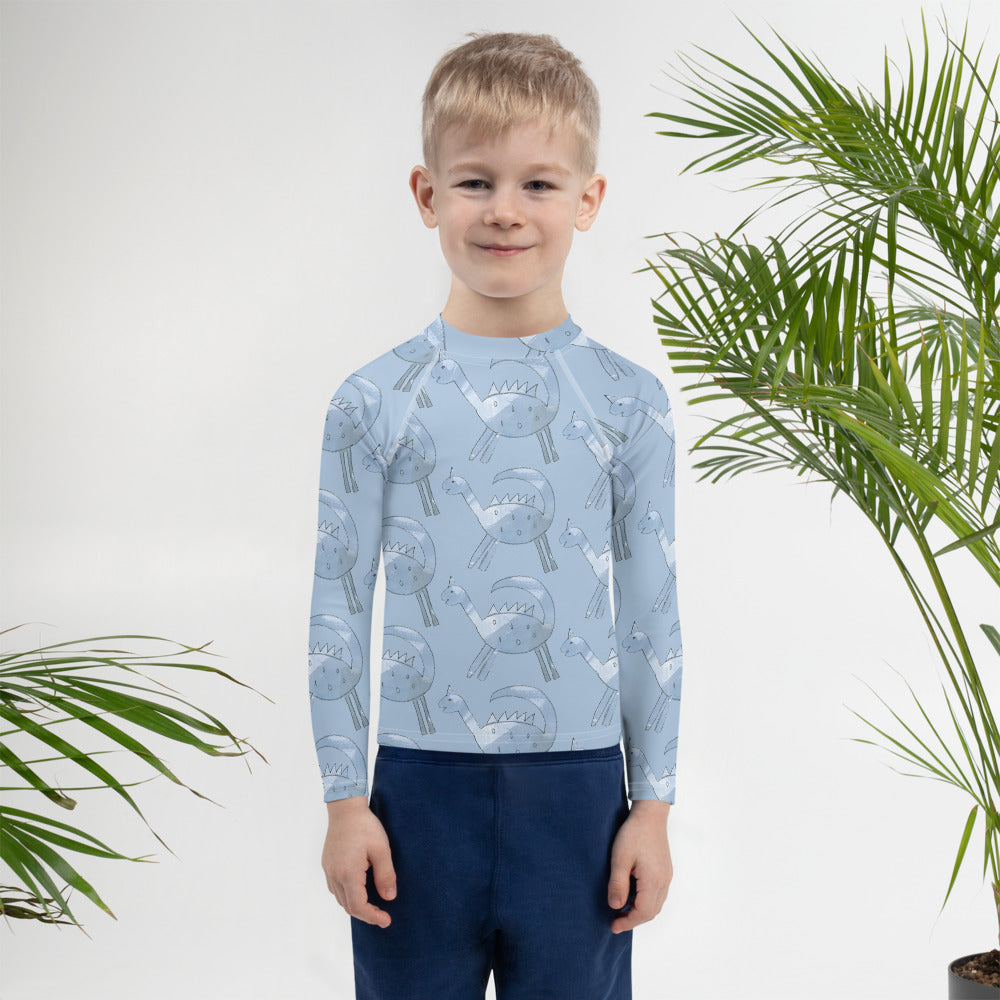 Protect the little ones from the elements with this colorful kids rash guard. Its sun-protective fabric and long body and sleeves make it perfect for running around on the beach, or just being active indoors.
